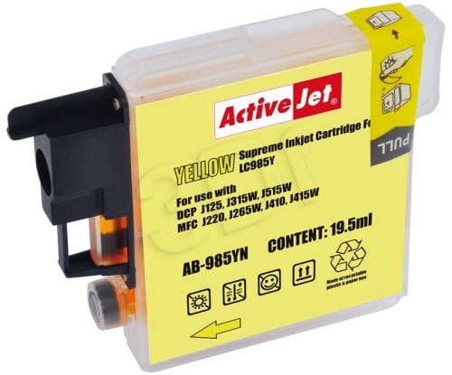Tusz ActiveJet AB-985YN do drukarki Brother (zamiennik LC985) DCP-J125 DCP-J315W – żółty (yellow)