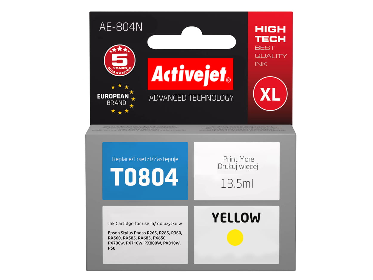 Tusz ActiveJet AE-804N do drukarki Epson (zamiennik T0804) P50 PX650 PX780FW PX660 R285 – żółty (yellow)