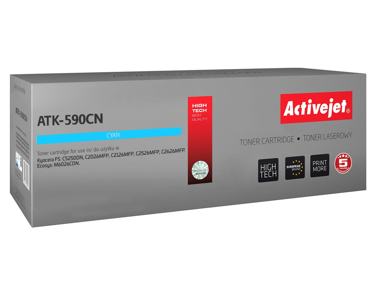Toner firmy ActiveJet oryginalnie zapakowany w folię ochronną i pudełko.