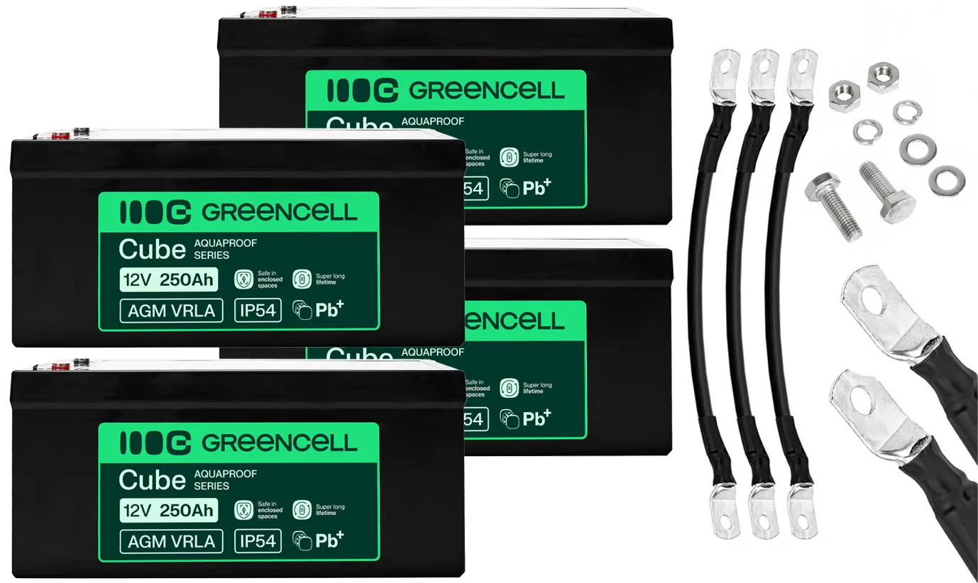 - Cztery akumulatory firmy Green Cell Cube AGM VRLA IP54 12V 250Ah