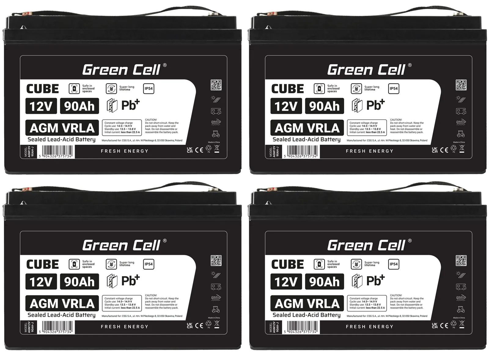 - Cztery akumulatory firmy Green Cell Cube AGM VRLA IP54 12V 90Ah