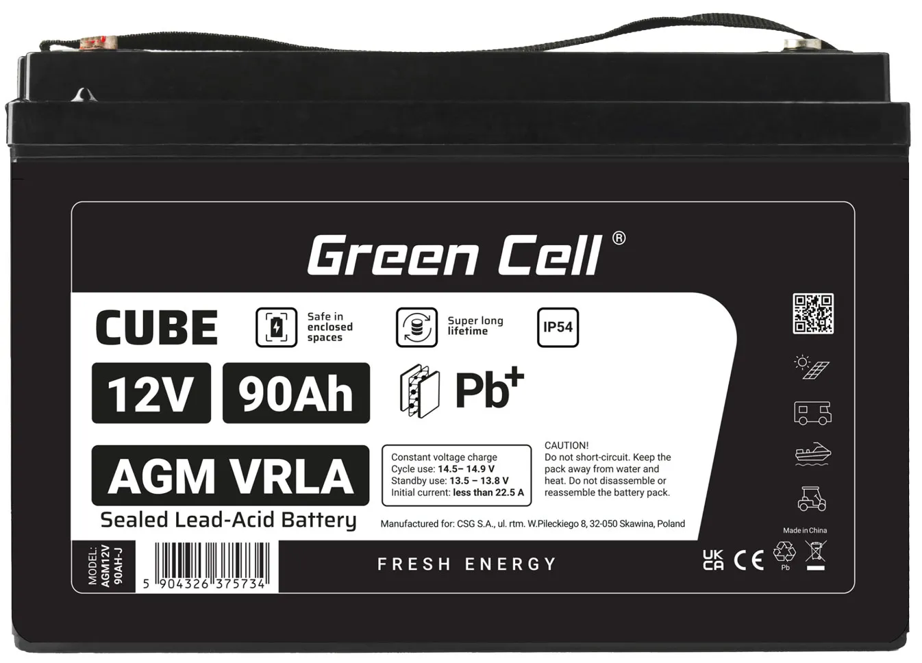Akumulator firmy Green Cell Cube AGM VRLA IP54 12V 90Ah