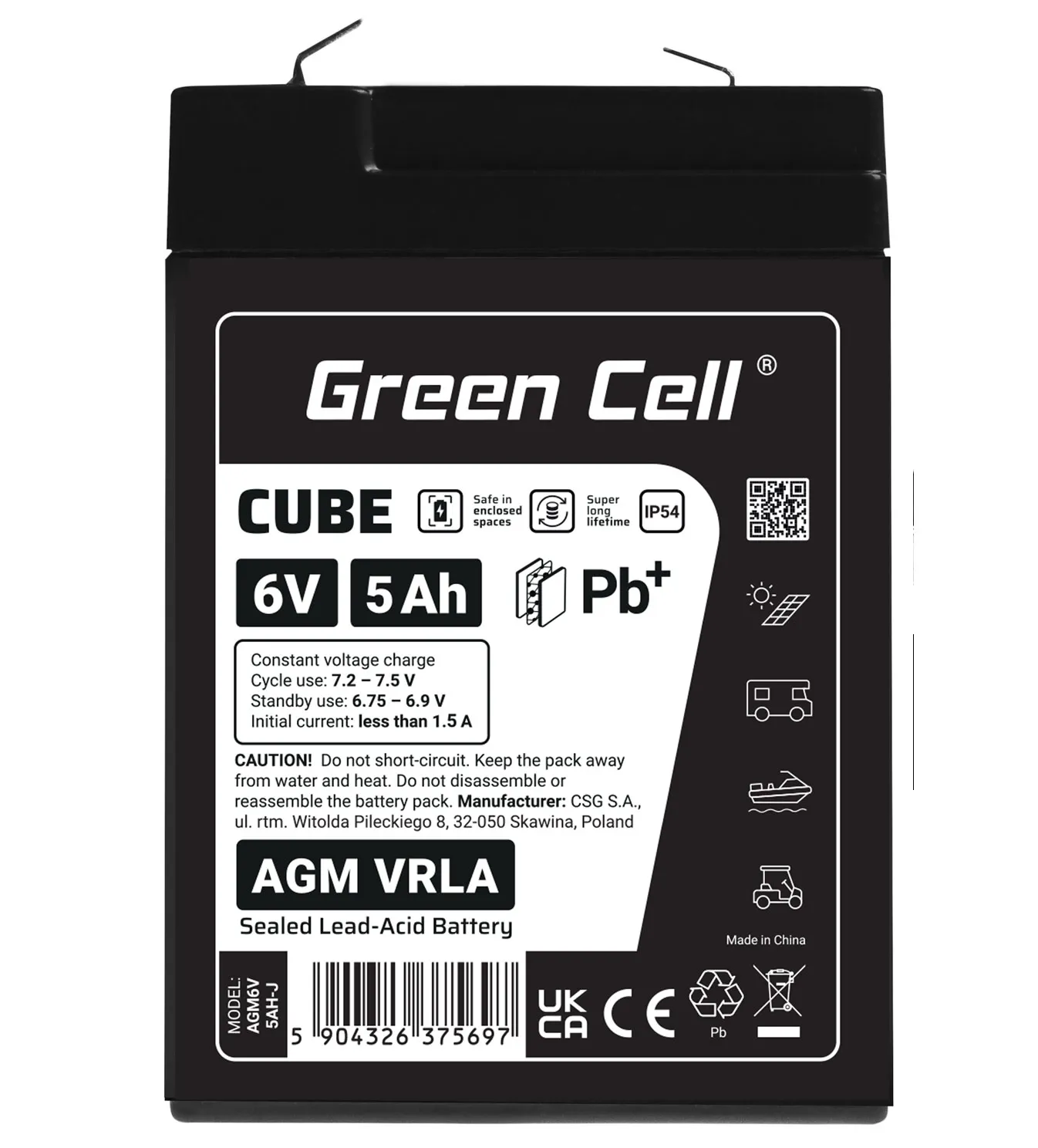 Akumulator firmy Green Cell Cube AGM VRLA IP54 6V 5Ah