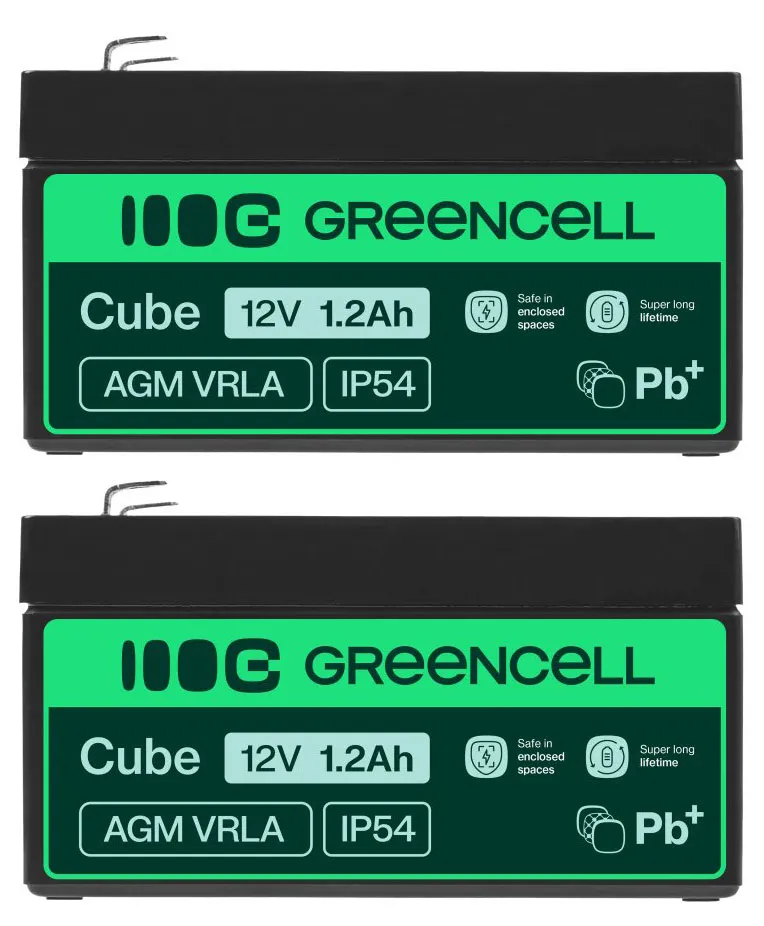 - Dwa akumulatory firmy Green Cell AGM VRLA 12V 1.2Ah