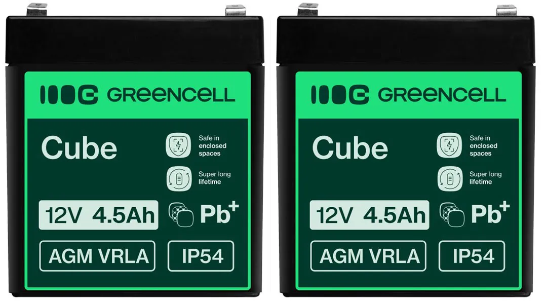 - Dwa akumulatory firmy Green Cell AGM VRLA 12V 4.5Ah