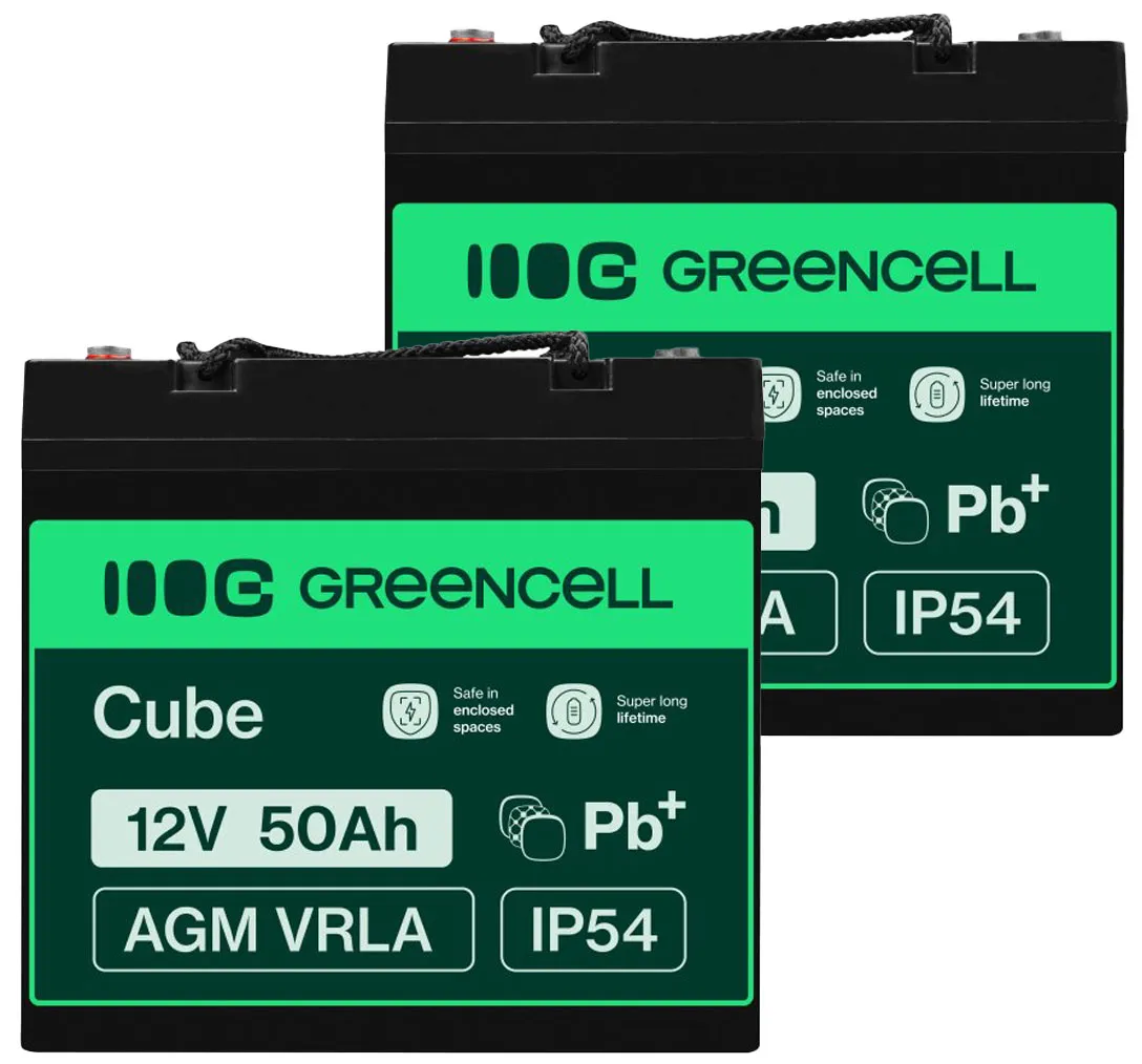- Dwa akumulatory firmy Green Cell AGM VRLA 12V 50Ah