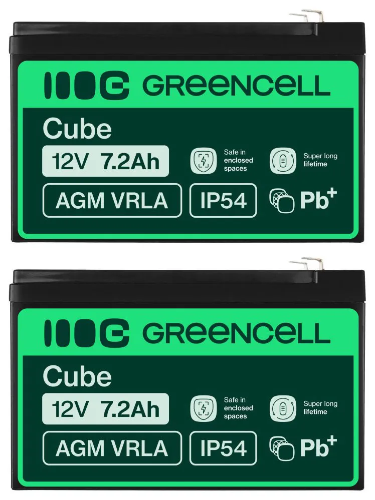 - Dwa akumulatory firmy Green Cell AGM VRLA 12V 7.2Ah