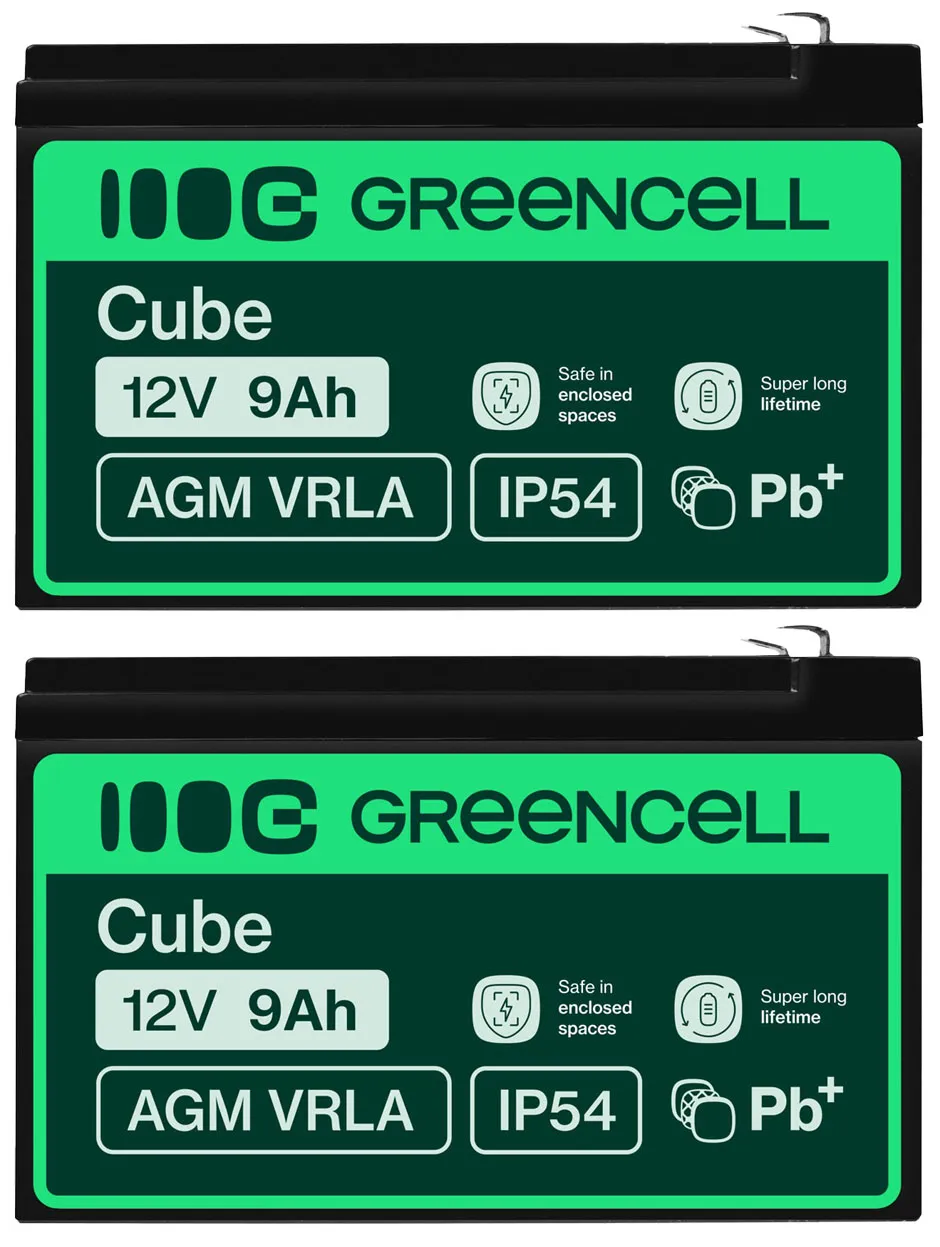- Dwa akumulatory firmy Green Cell AGM VRLA 12V 9Ah