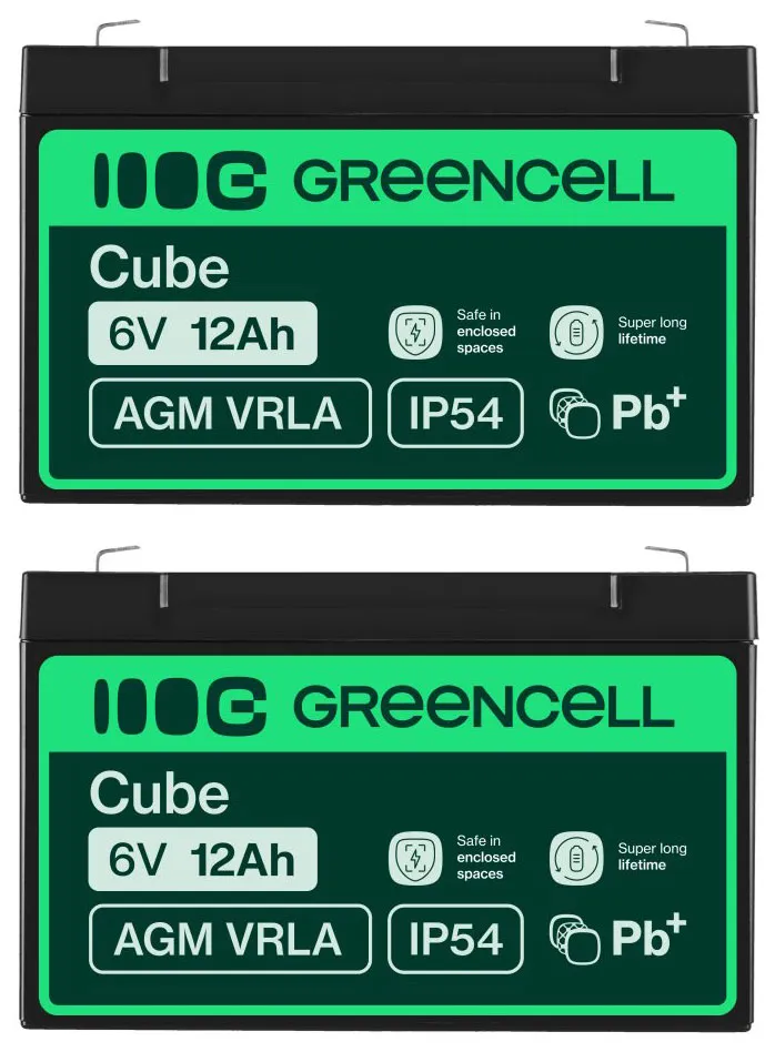 - Dwa akumulatory firmy Green Cell AGM VRLA 6V 12Ah
