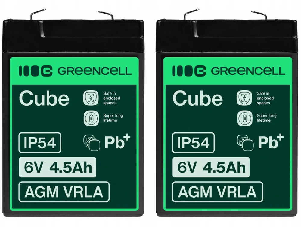 - Dwa akumulatory firmy Green Cell AGM VRLA 6V 4.5Ah