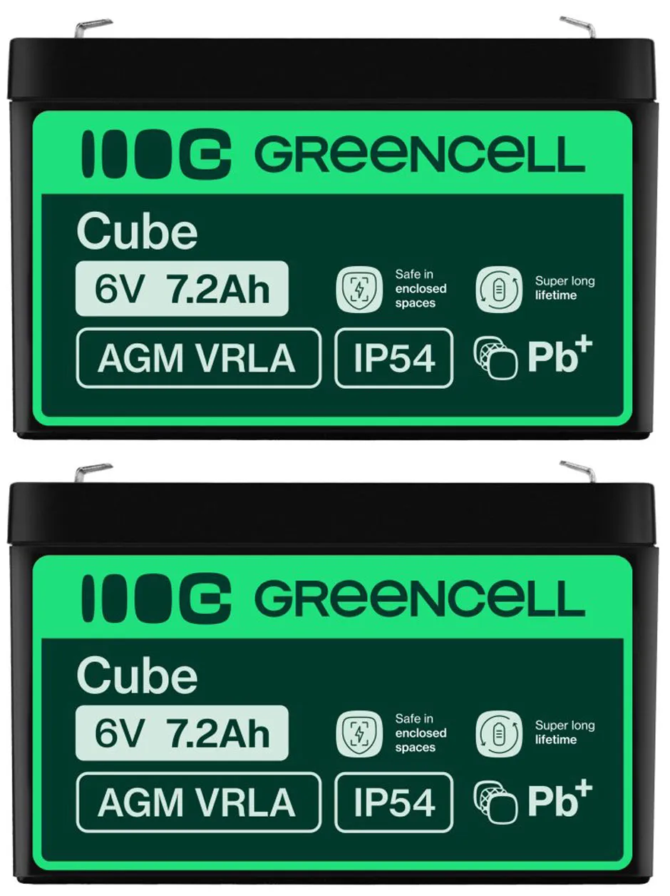 - Dwa akumulatory firmy Green Cell AGM VRLA 6V 7.2Ah