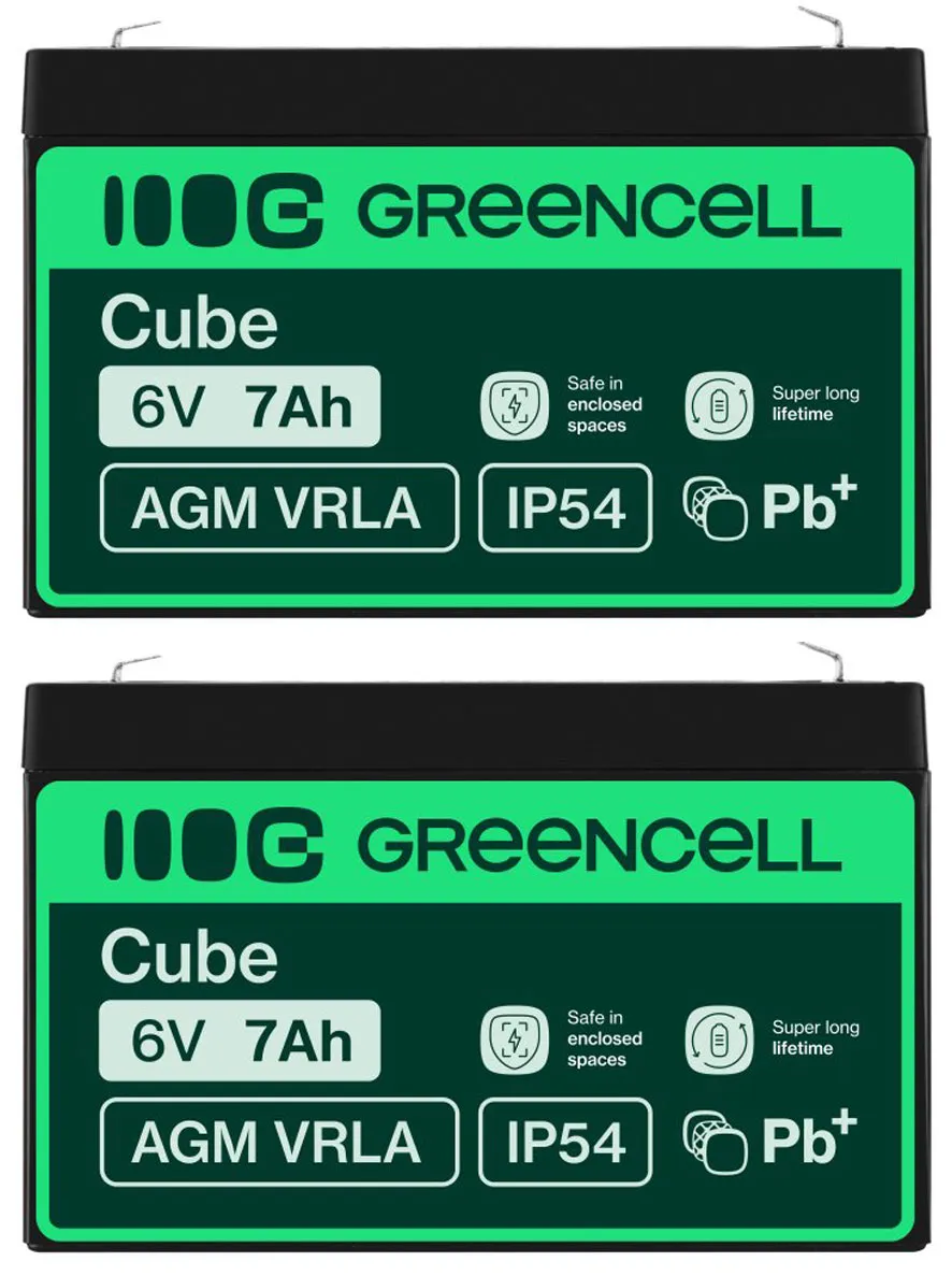 - Dwa akumulatory firmy Green Cell AGM VRLA 6V 7Ah