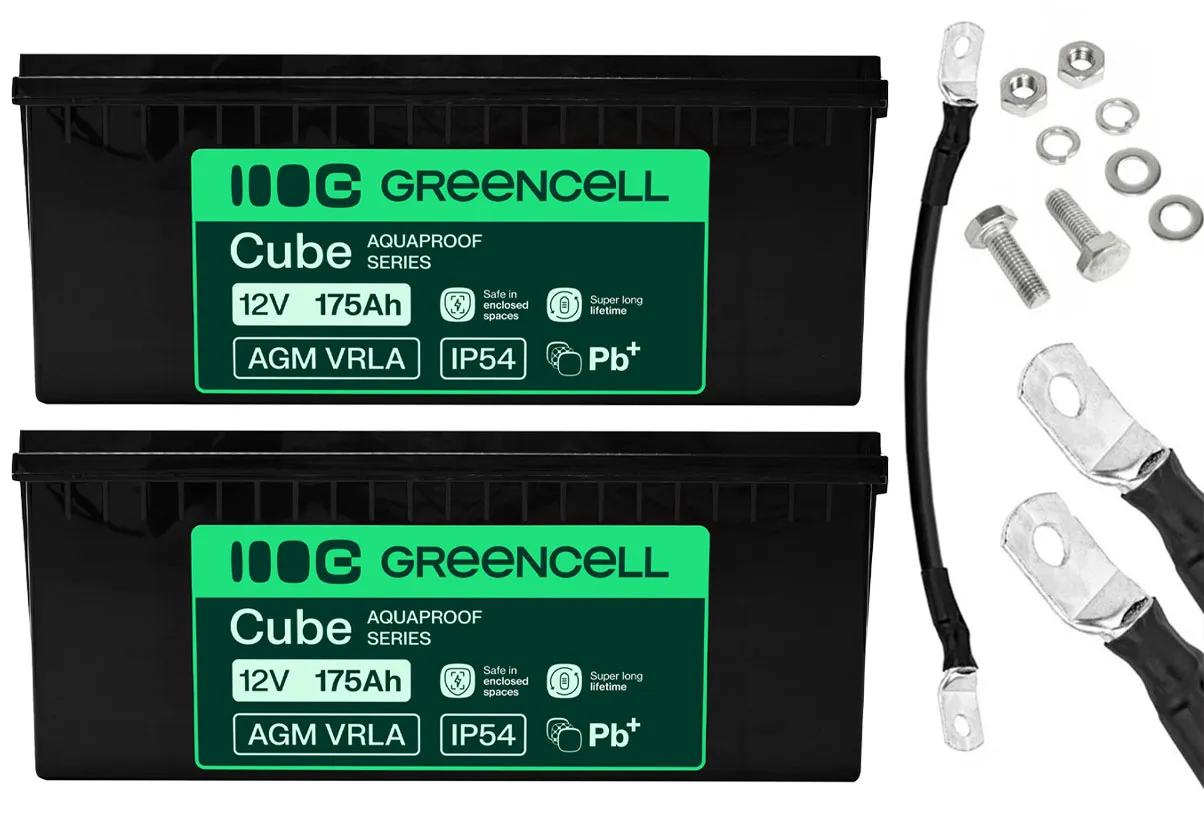 - Dwa akumulatory firmy Green Cell Cube AGM VRLA IP54 12V 175Ah