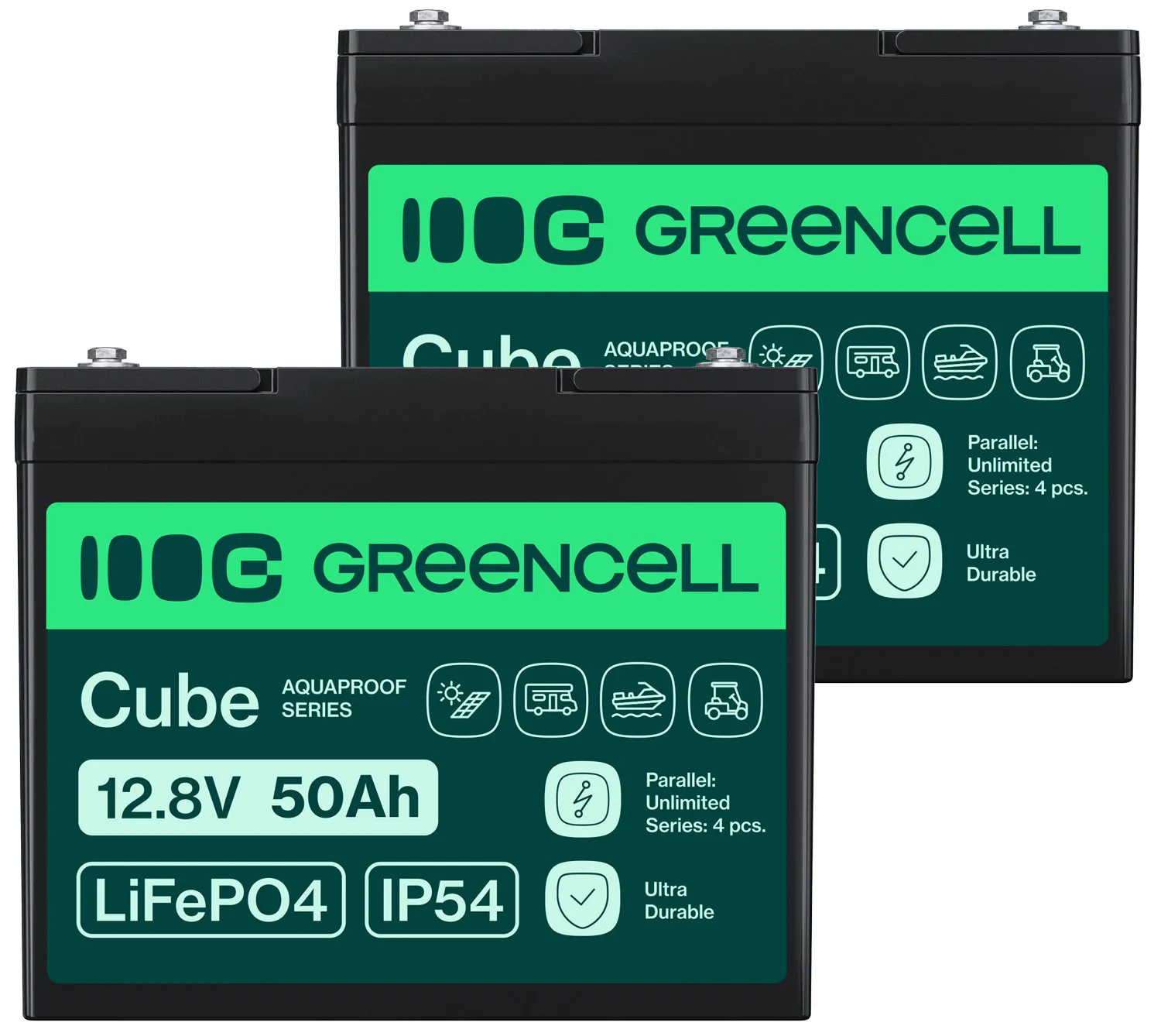 - Dwa akumulatory firmy Green Cell LiFePO4 50Ah 12.8V 640Wh