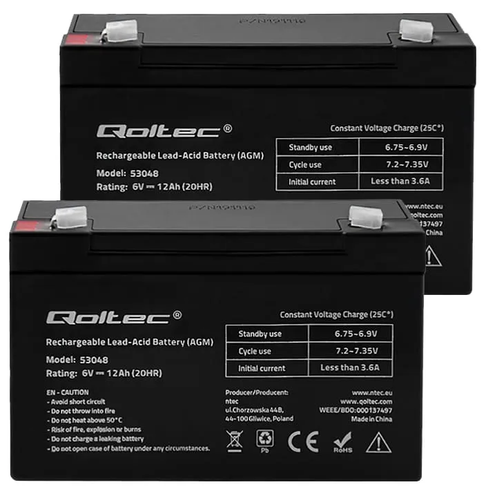 - Dwa akumulatory firmy Qoltec AGM LongLife 6V 2.3Ah