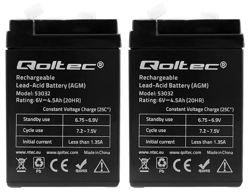 - Dwa akumulatory firmy Qoltec AGM LongLife 12V 4.5Ah