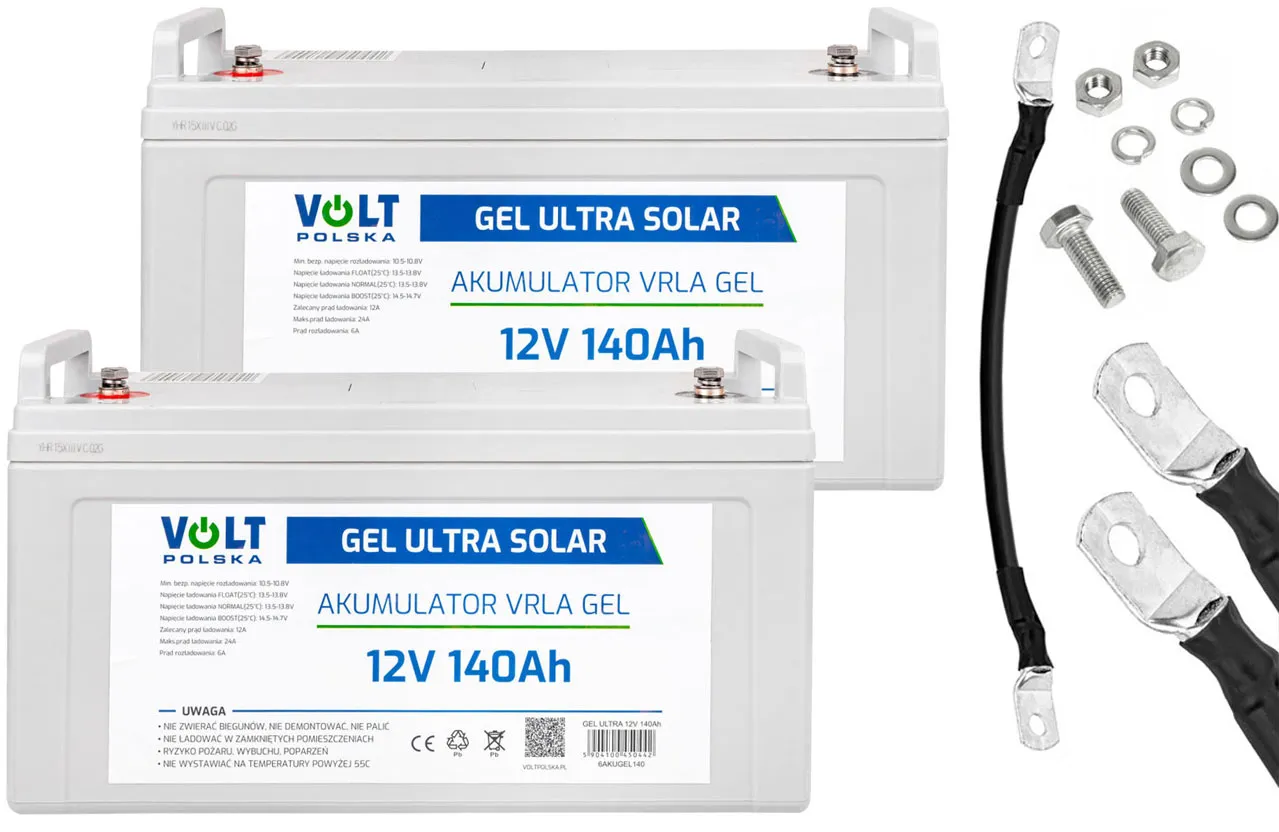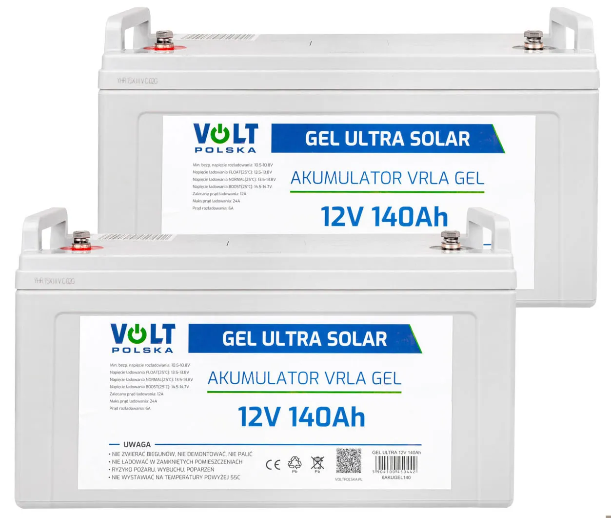 - Dwa akumulatory firmy Volt Polska GEL VPRO Premium 12V 140Ah