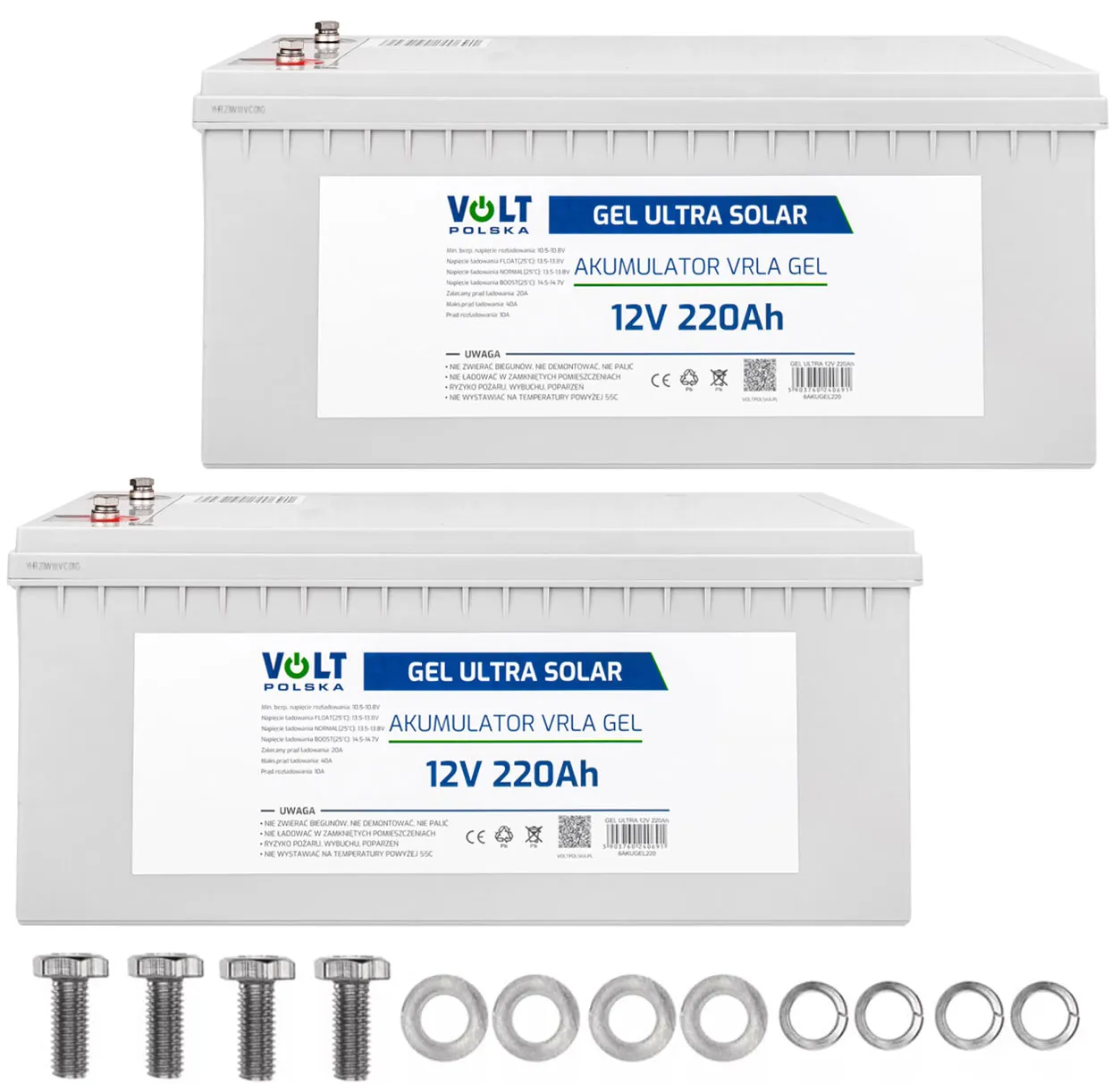 - Dwa akumulatory żelowe firmy Volt Polska GEL VPRO Premium 12V 220Ah