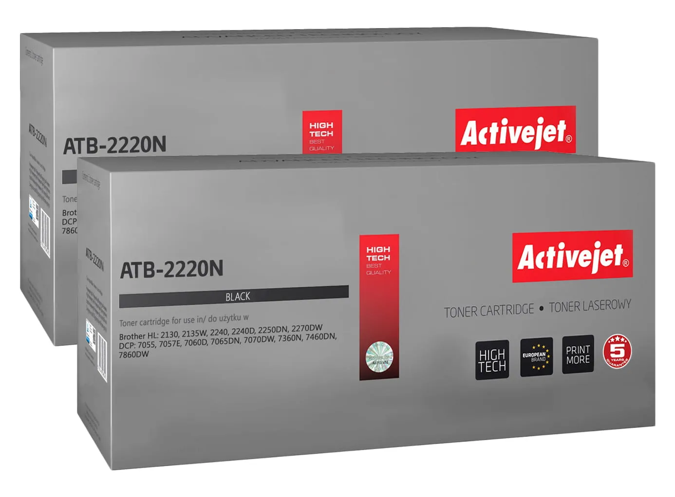 Dwa tonery firmy ActiveJet oryginalnie zapakowany w folię ochronną i pudełko.