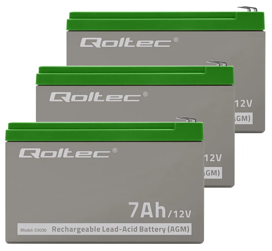 - Trzy akumulatory firmy Qoltec AGM LongLife 12V 7Ah