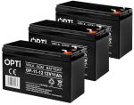 Zestaw trzech akumulatorów firmy Volt Polska OPTI VRLA AGM 12V 11Ah do pojazdów z napędem elektrycznym, systemów zasilania awaryjnego (UPS, systemy automatyki), instalacji fotowoltaicznych, czy przetwornic napięcia. Najlepiej sprawdza się w układach ładowania buforowego.
