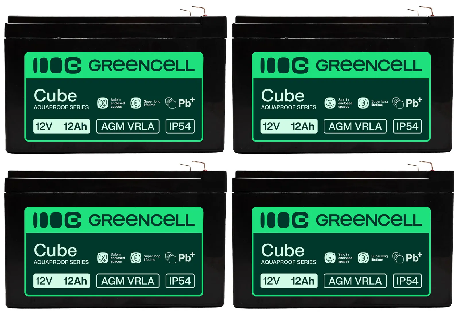 - Cztery akumulatory firmy Green Cell Cube AGM VRLA IP54 12V 12Ah