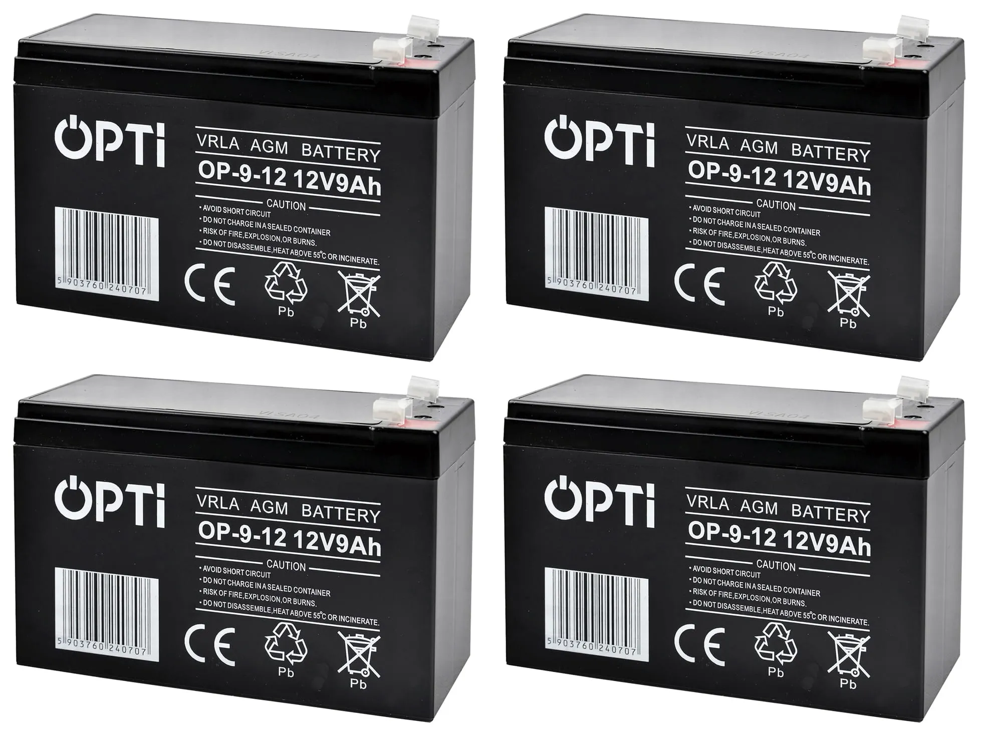 Zestaw czterech akumulatorów firmy Volt Polska OPTI VRLA AGM 12V 9Ah do pojazdów z napędem elektrycznym, systemów zasilania awaryjnego (UPS, systemy automatyki), instalacji fotowoltaicznych, czy przetwornic napięcia. Najlepiej sprawdza się w układach ładowania buforowego. Projektowana żywotność wynosi 5-8 lat dla pracy w temperaturze ok. 20-25 stopniach Celsjusza.