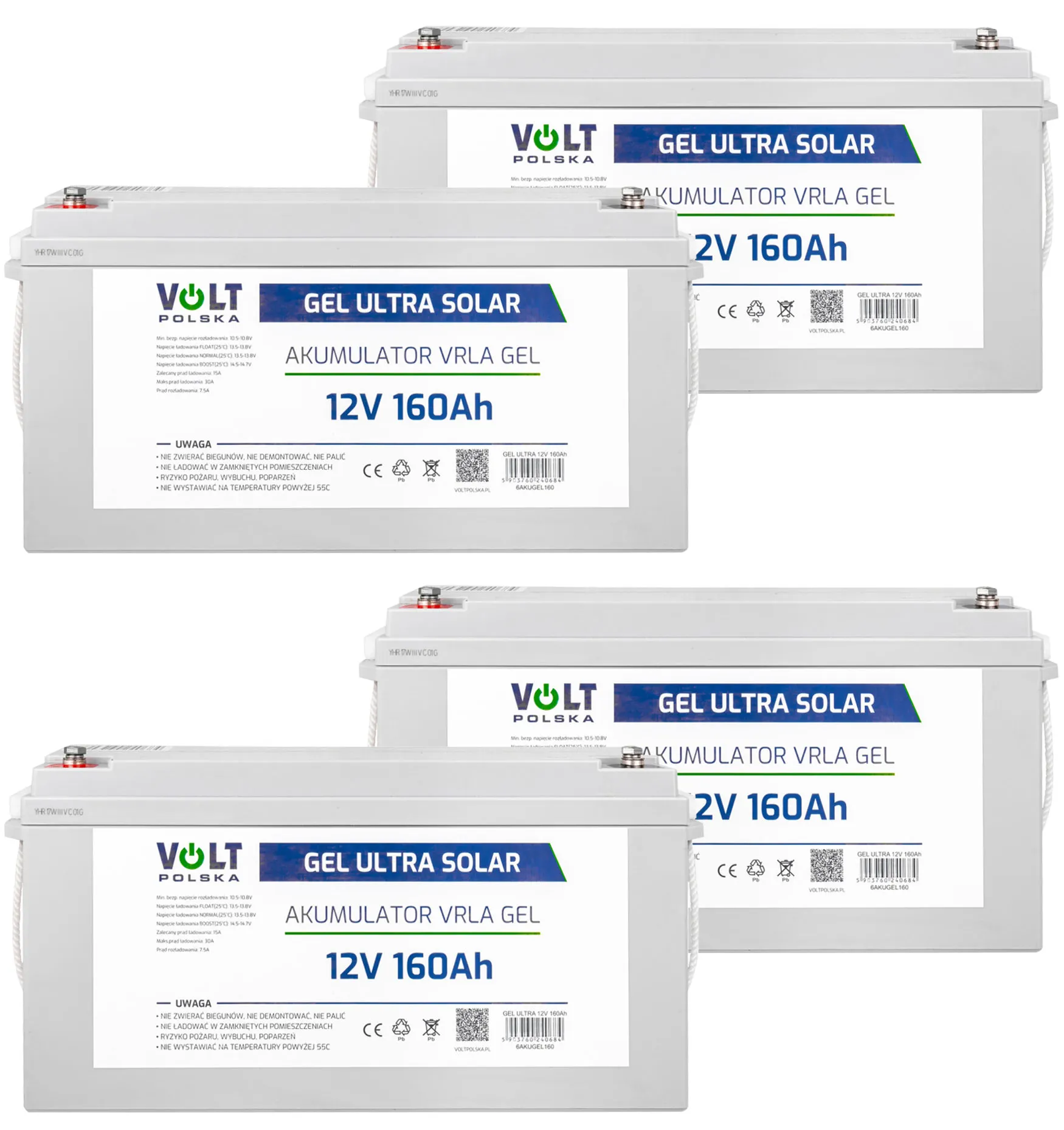 Cztery akumulatory firmy Volt Polska GEL VPRO Premium 12V 160Ah