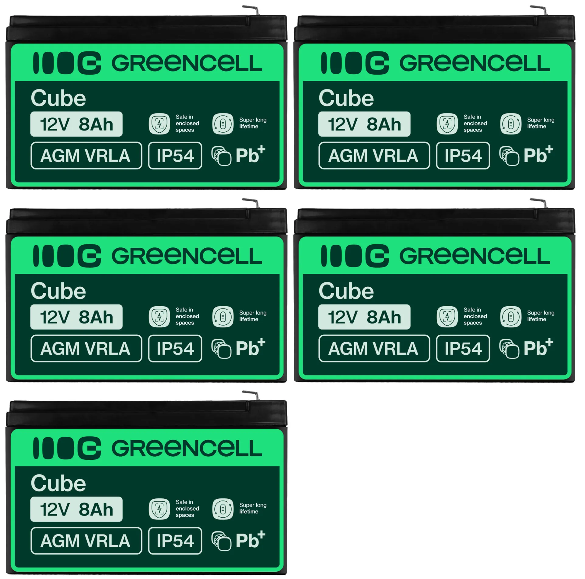 - Pięć akumulatorów firmy Green Cell AGM VRLA 12V 8Ah