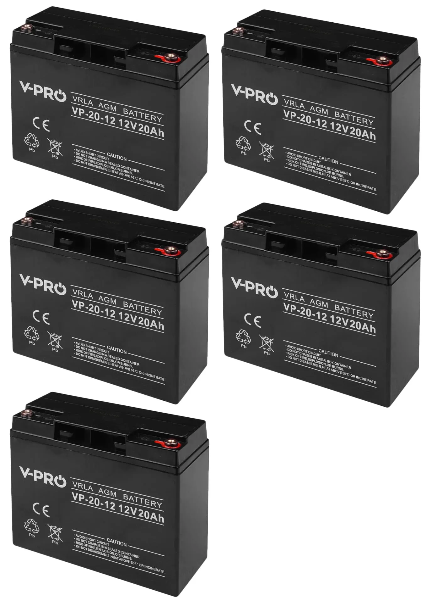 Pięć akumulatorów firmy Volt Polska VPRO VRLA AGM 12V 20Ah