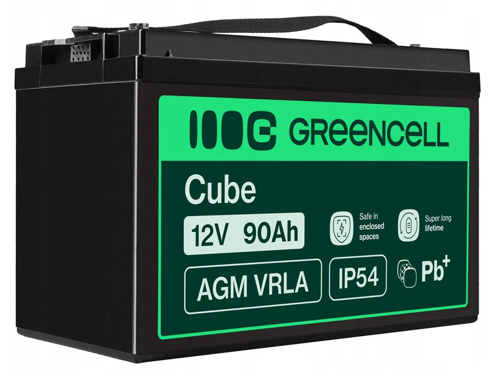 Akumulator AGM Green Cell o napięciu 12V to wykonany z wysokiej jakości materiałów model przystosowany zarówno do pracy buforowej, jak i cyklicznej. Akumulator oparty jest na technologii AGM, co oznacza, że elektrolit wchłonięty jest w separator z włókna szklanego, co uniemożliwia jego wyciek. Dzięki temu akumulator może pracować w wielu pozycjach, nie tylko pionowej. Jest to świetna, znacznie bezpieczniejsza alternatywa dla akumulatorów kwasowo-ołowiowych.
