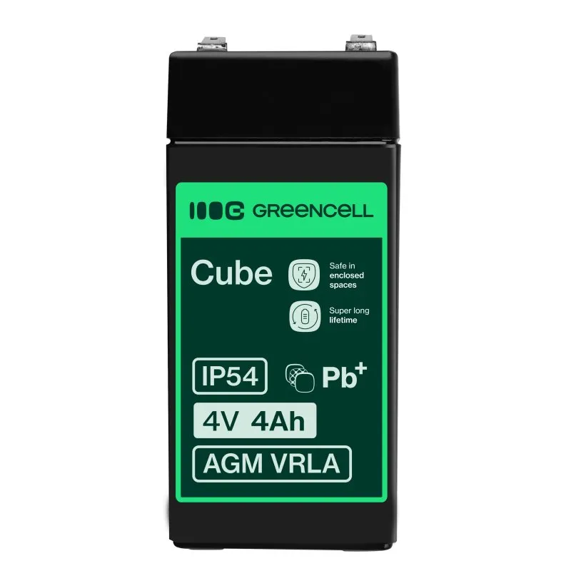 Akumulator AGM Green Cell o napięciu 4V to wykonany z wysokiej jakości materiałów model przystosowany zarówno do pracy buforowej, jak i cyklicznej. Akumulator oparty jest na technologii AGM, co oznacza, że elektrolit wchłonięty jest w separator z włókna szklanego, co uniemożliwia jego wyciek. Dzięki temu akumulator może pracować w wielu pozycjach, nie tylko pionowej. Jest to świetna, znacznie bezpieczniejsza alternatywa dla akumulatorów kwasowo-ołowiowych.