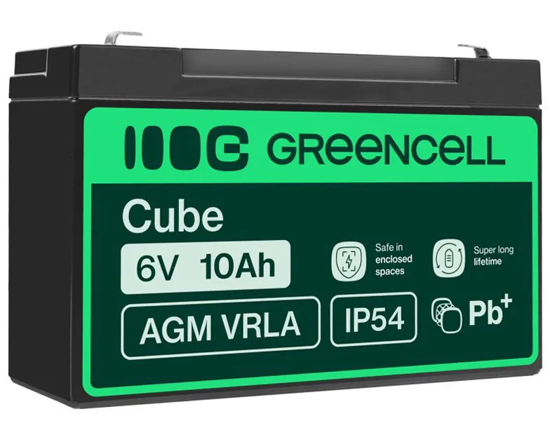 Akumulator AGM Green Cell o napięciu 6V to wykonany z wysokiej jakości materiałów model przystosowany zarówno do pracy buforowej, jak i cyklicznej. Akumulator oparty jest na technologii AGM, co oznacza, że elektrolit wchłonięty jest w separator z włókna szklanego, co uniemożliwia jego wyciek. Dzięki temu akumulator może pracować w wielu pozycjach, nie tylko pionowej. Jest to świetna, znacznie bezpieczniejsza alternatywa dla akumulatorów kwasowo-ołowiowych.