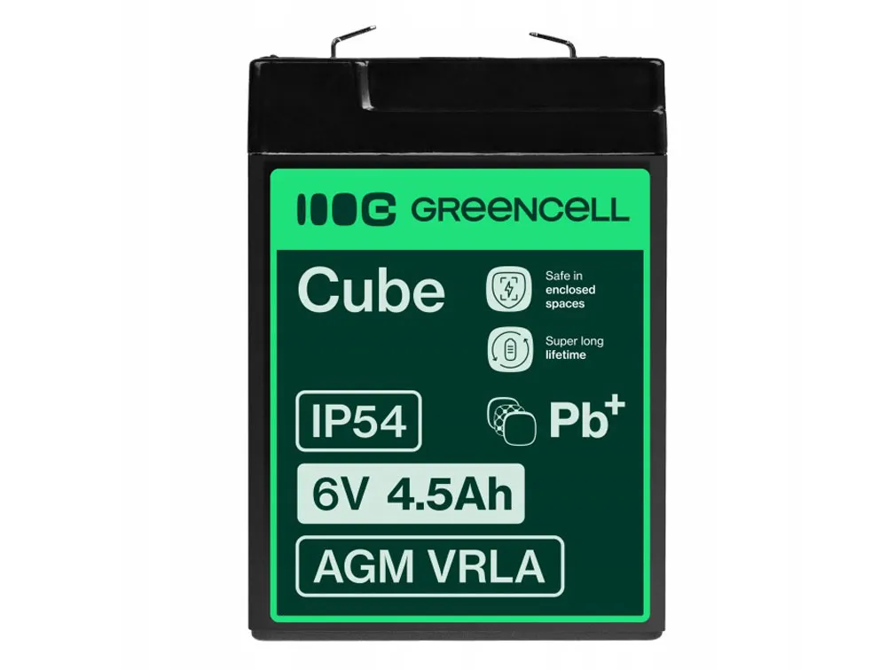 Akumulator AGM Green Cell o napięciu 6V to wykonany z wysokiej jakości materiałów model przystosowany zarówno do pracy buforowej, jak i cyklicznej. Akumulator oparty jest na technologii AGM, co oznacza, że elektrolit wchłonięty jest w separator z włókna szklanego, co uniemożliwia jego wyciek. Dzięki temu akumulator może pracować w wielu pozycjach, nie tylko pionowej. Jest to świetna, znacznie bezpieczniejsza alternatywa dla akumulatorów kwasowo-ołowiowych.