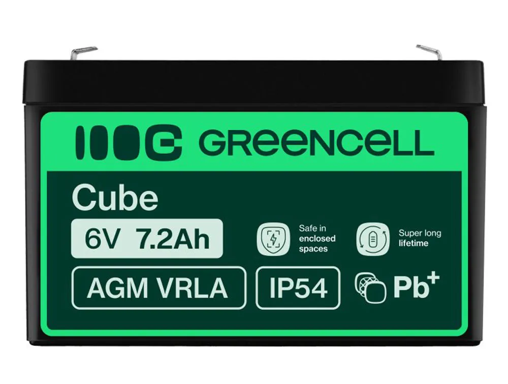 Akumulator AGM Green Cell o napięciu 6V to wykonany z wysokiej jakości materiałów model przystosowany zarówno do pracy buforowej, jak i cyklicznej. Akumulator oparty jest na technologii AGM, co oznacza, że elektrolit wchłonięty jest w separator z włókna szklanego, co uniemożliwia jego wyciek. Dzięki temu akumulator może pracować w wielu pozycjach, nie tylko pionowej. Jest to świetna, znacznie bezpieczniejsza alternatywa dla akumulatorów kwasowo-ołowiowych.