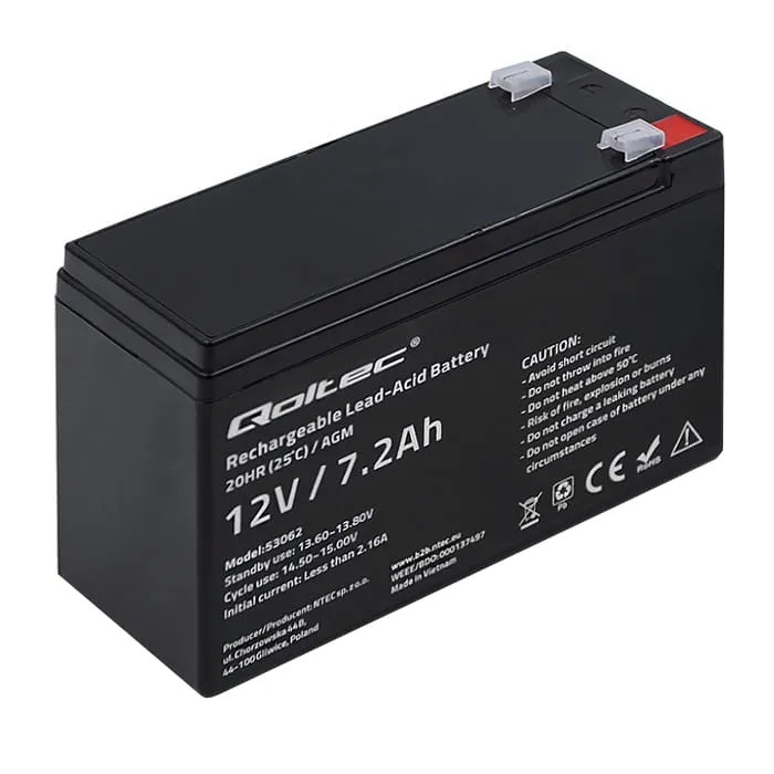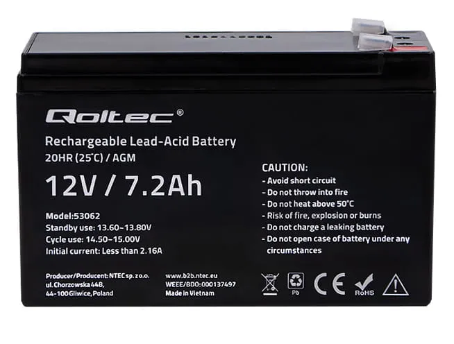 - Akumulator firmy Qoltec AGM LongLife 12V 7.2Ah