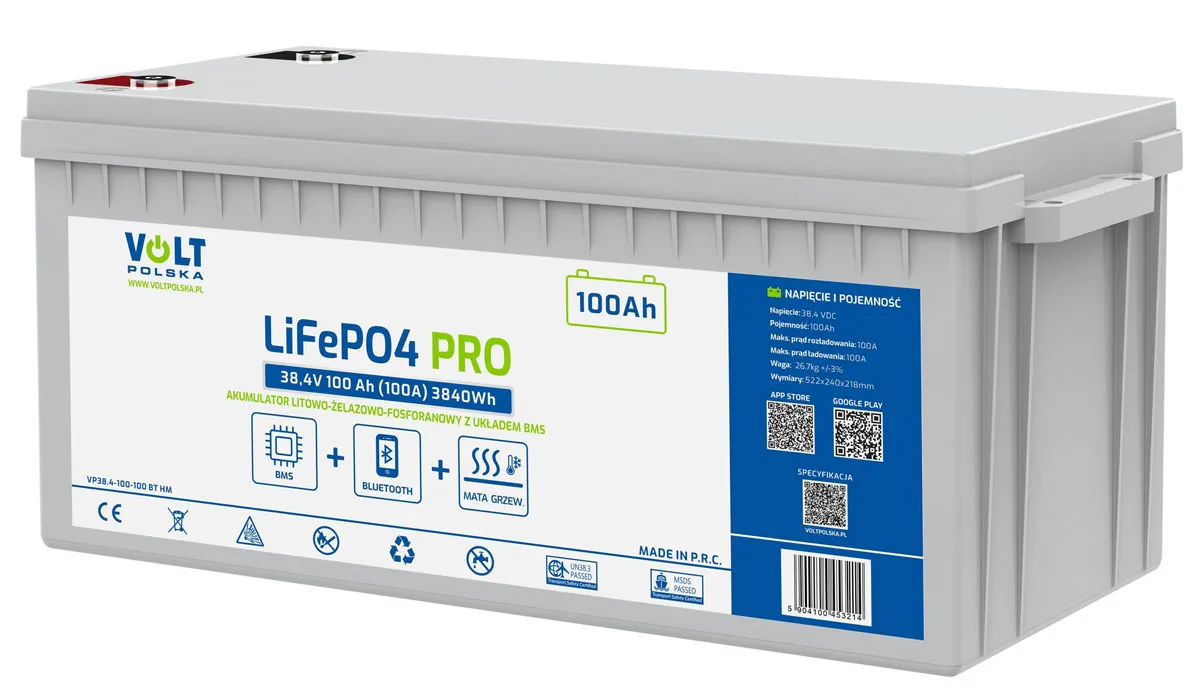 - Akumulator firmy Volt Polska LiFePO4 38.4V 100AH (100A) + BlueTooth + mata grzewcza