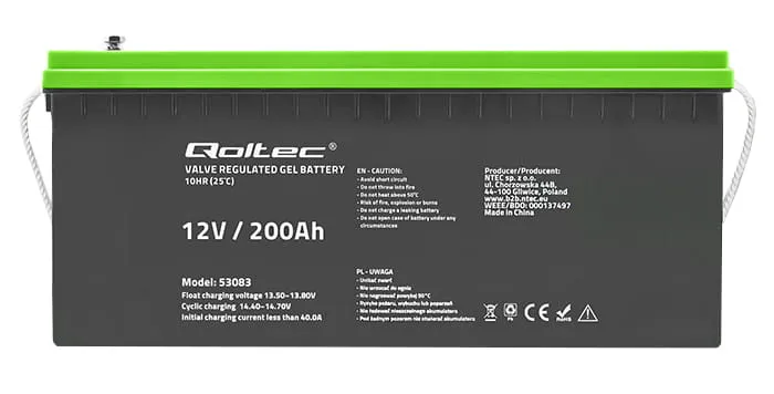- Akumulator żelowy firmy Qoltec GEL Professional LongLife 12V 200Ah
