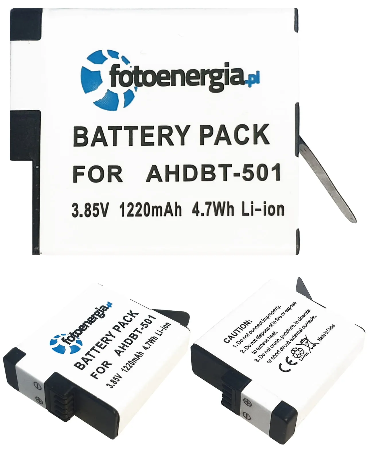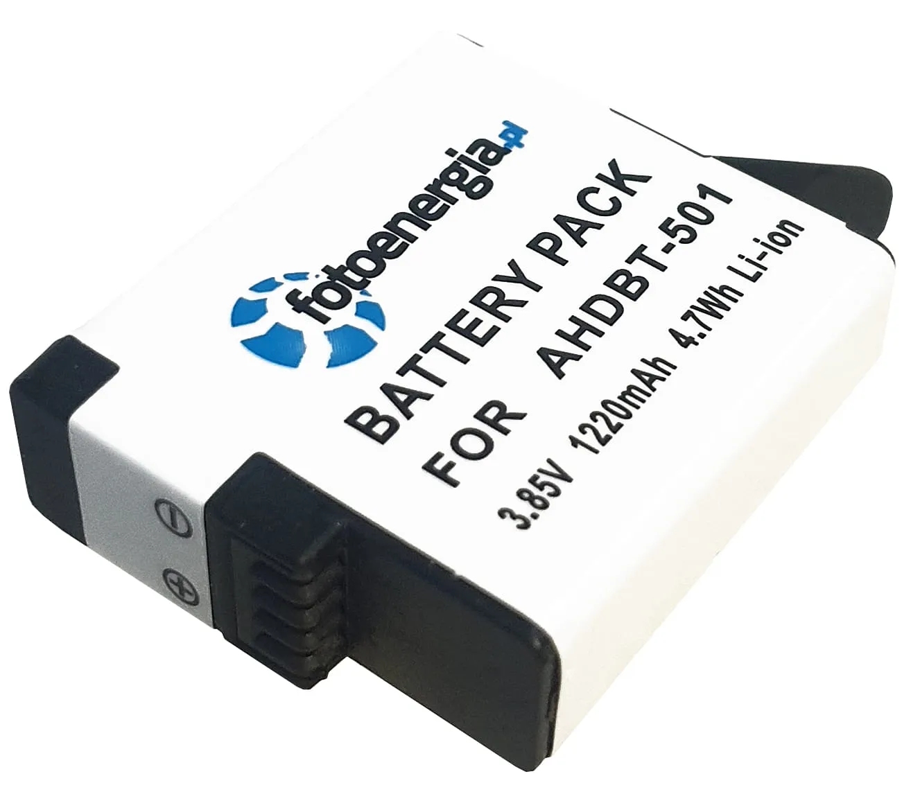 - Symbol akumulatora: AHDBT-501 do kamer GoPro Hero 5, Hero 6, Hero 7, Hero 8