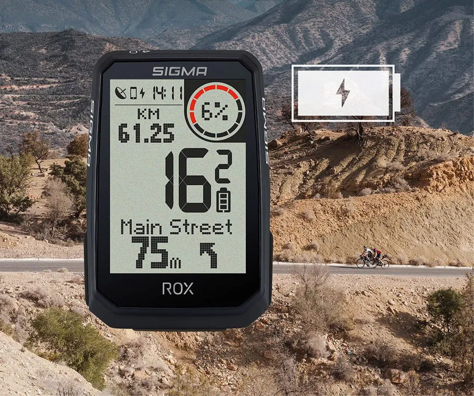 Po włączeniu, komputer ROX w ciągu kilku sekund określa Twoje położenie przez GPS i GLONASS. Dzięki intuicyjnej obsłudze za pomocą trzech przycisków możesz od razu ruszać w trasę. W aplikacji SIGMA RIDE możesz ustawiać swoje własne sposoby wyświetlania danych.