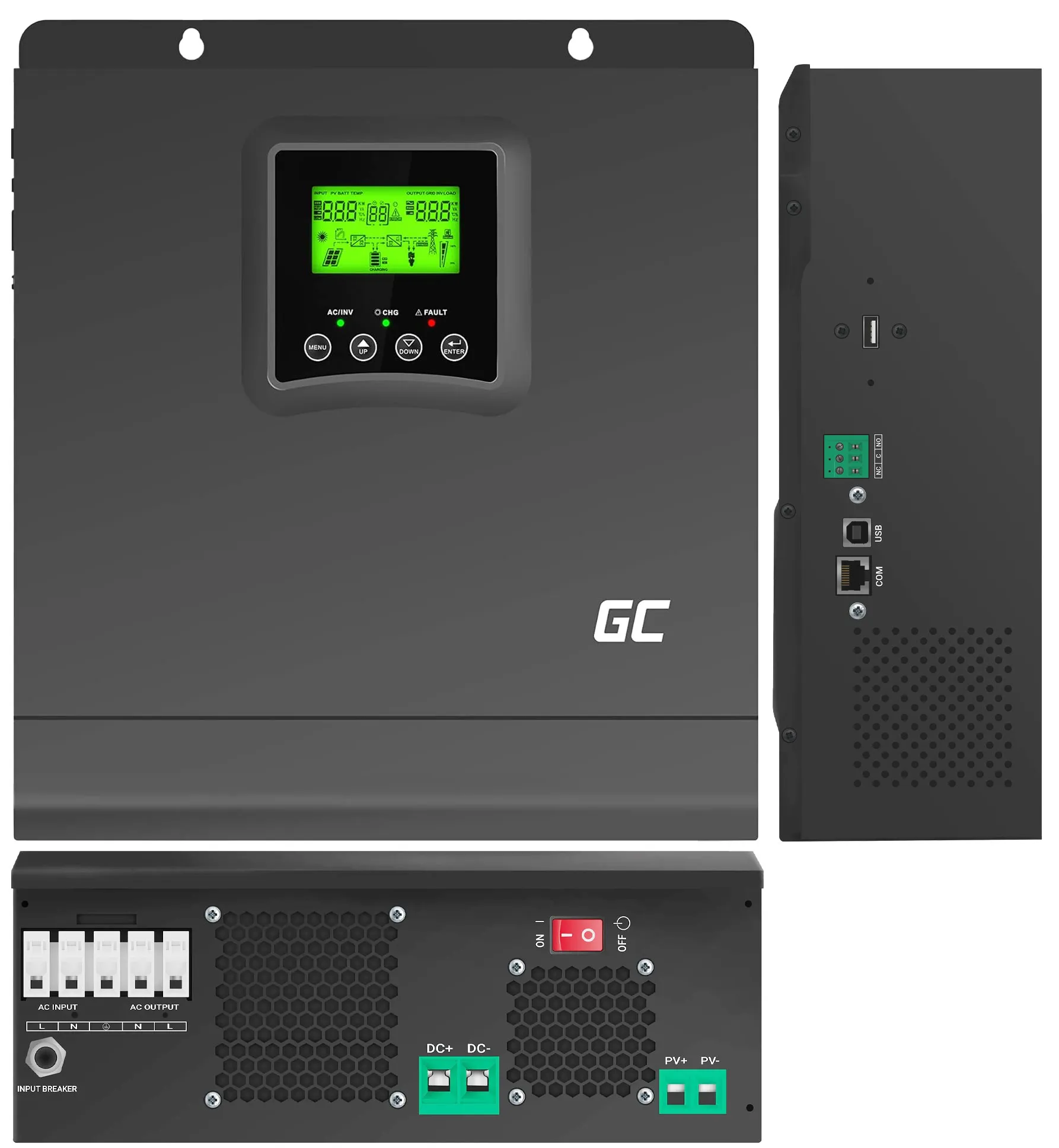 Falownik solarny Green Cell (nazywany również przetwornicą) to wielofunkcyjne urządzenie łączące w jednej obudowie trzy kluczowe elementy systemu fotowoltaicznego: