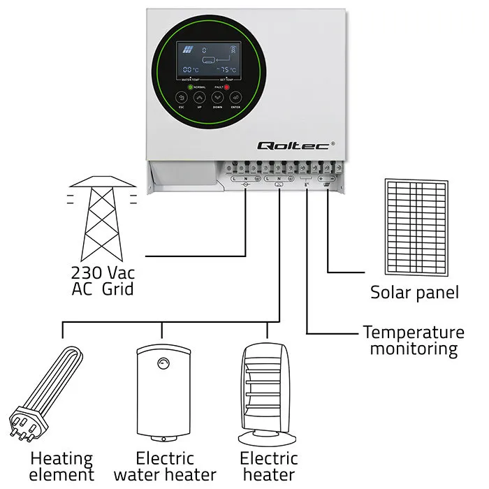 - Inwerter Przetwornica solarna do grzania wody Qoltec ECO Solar Boost MPPT BYPASS LCD 4kW