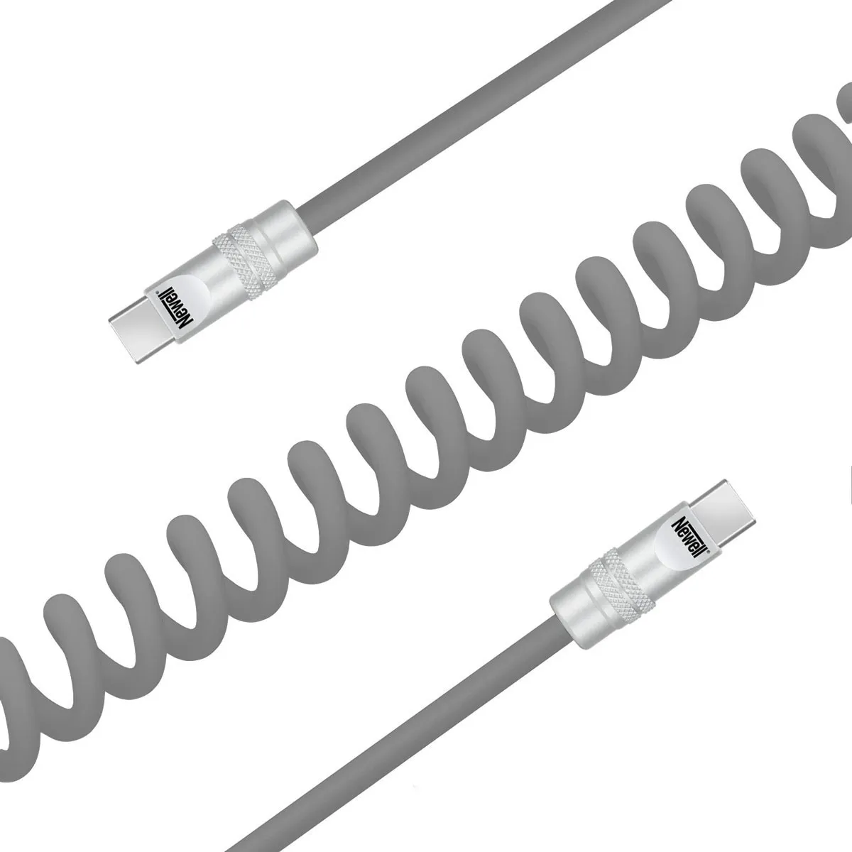 - Kabel Newell USB-C - USB-C 100W, 1,5m, silikonowy, spiralny, szary