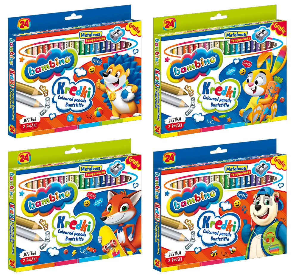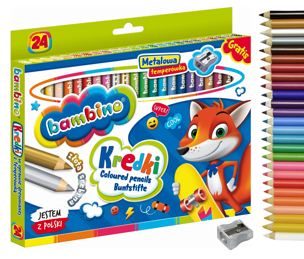 - Kredki St. Majewski Bambino w oprawie drewnianej z temperówką - 24 kolory