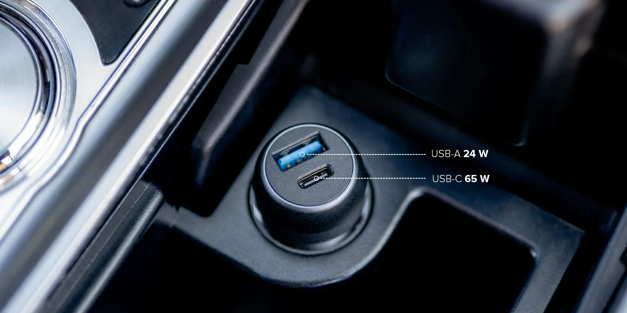 Dzięki portom USB-C (maks. 65 W) i USB-A (maks. 24 W) umożliwia ładowanie dwóch urządzeń jednocześnie. Technologia Power Delivery zapewnia szybkie ładowanie, a łączna moc 89 W pozwala na efektywne zasilanie m.in. smartfonów, laptopów, tabletów czy kamer samochodowych.