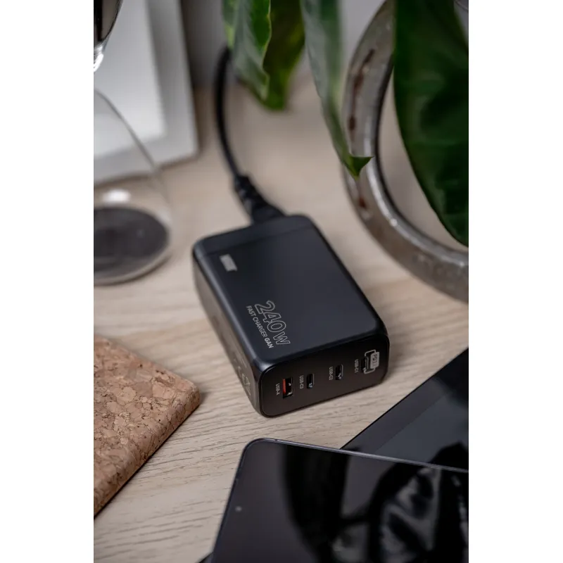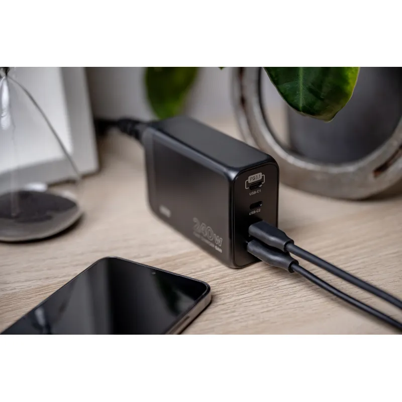 Imponująca moc wyjściowa 240 W zapewnia błyskawiczne ładowanie praktycznie każdego laptopa dostępnego na rynku, pozwalając jednocześnie na uzupełnianie energii w innych posiadanych urządzeniach.