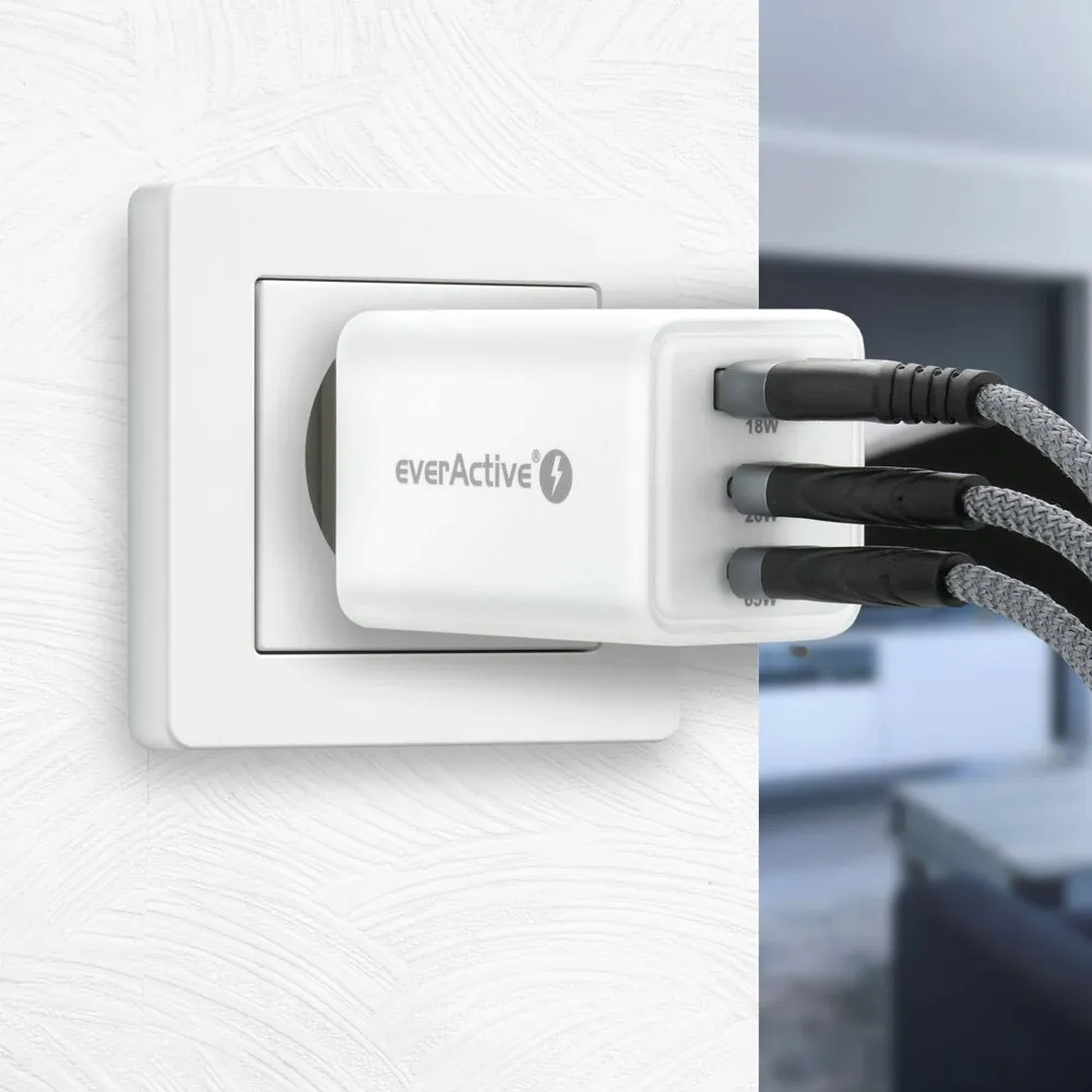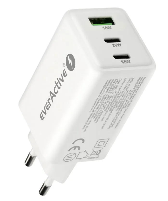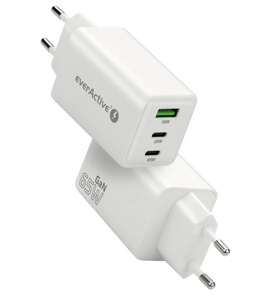 Dzięki zastosowaniu najnowszej technologii GaN, ładowarka od everActive jest o 30% mniejsza niż standardowa ładowarka i w rezultacie zajmuje mniej miejsca. Szeroki zakres napięcia i częstotliwości napięcia - 100-240V ~ 50-60Hz, umożliwia korzystanie z ładowarki w dowolnym miejscu na świecie. Kompaktowy rozmiar ułatwia przechowywanie, co sprawia, że urządzenie idealnie sprawdzi się w podróży.