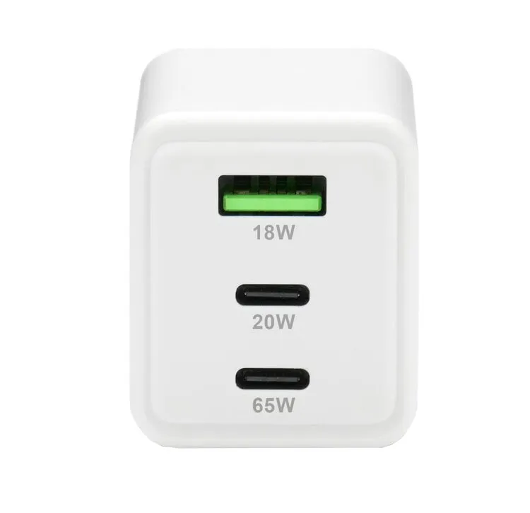 Ładowarka została wyposażona w trzy gniazda szybkiego ładowania - USB oraz dwa USB-C.