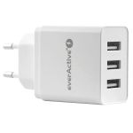 everActive SC-300 to solidna ładowarka sieciowa, wyposażona w trzy porty USB z technologią iQ Smart Charging. Sprawdzi się wszędzie tam, gdzie liczba gniazd sieciowych jest mocno ograniczona i nie można użyć zwykłej jedno-portowej ładowarki sieciowej, by jednocześnie załadować więcej urządzeń.