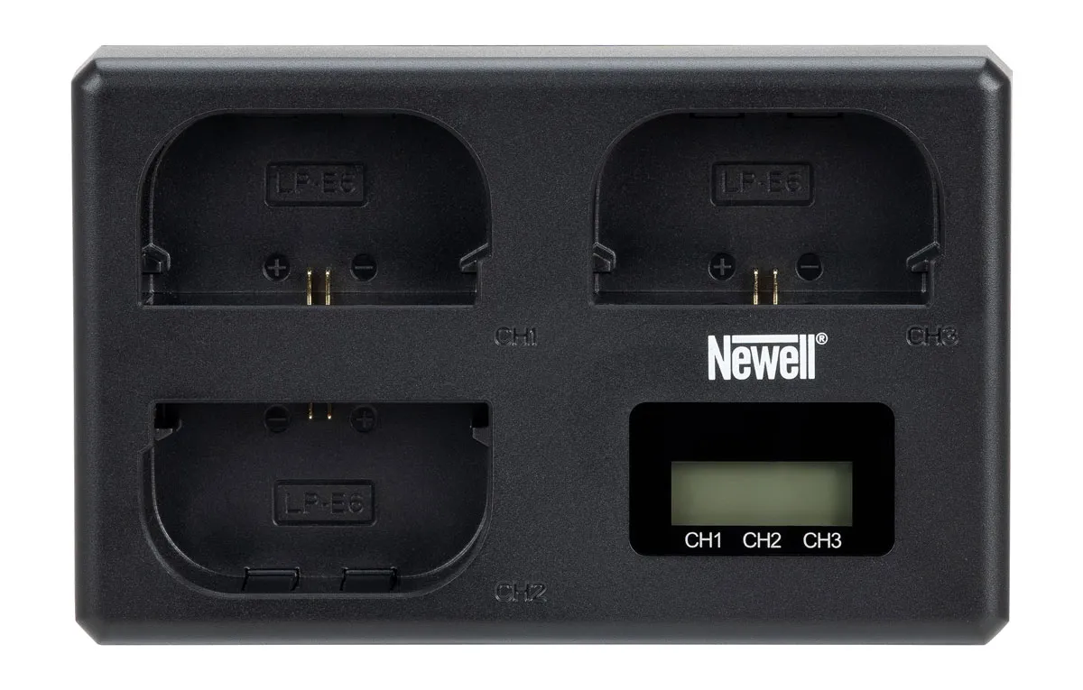 - Ładowarka trójkanałowa Newell TT-USB-C do akumulatorów Canon LP-E6